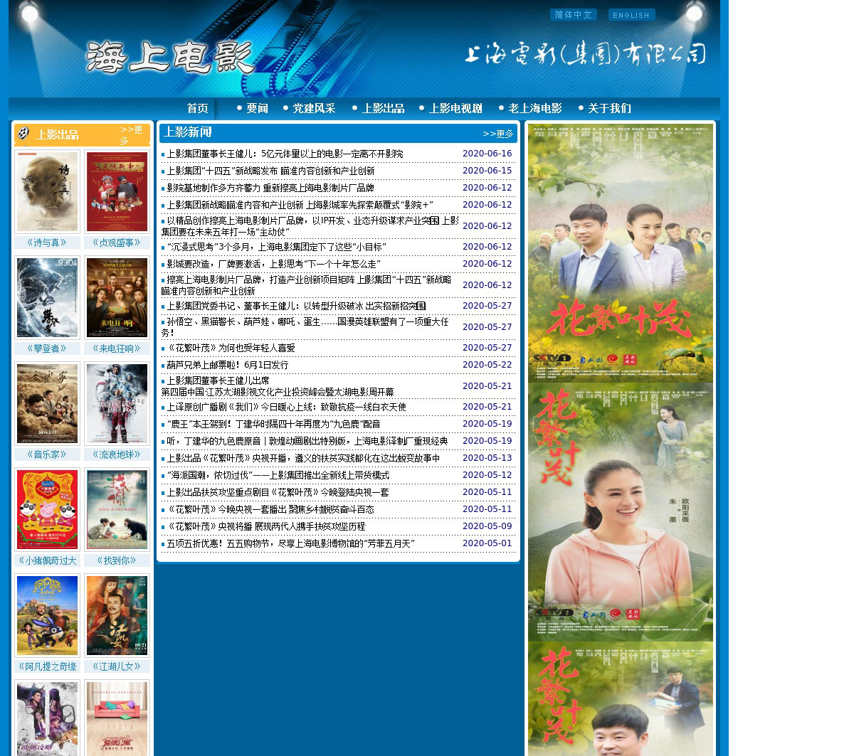 上影集团的官方网站,这里有最新的集团新闻,影讯及电影,电视剧,片花,海报,剧照,影片介绍,幕后花絮,电影院排片表,东方电影频道节目表等