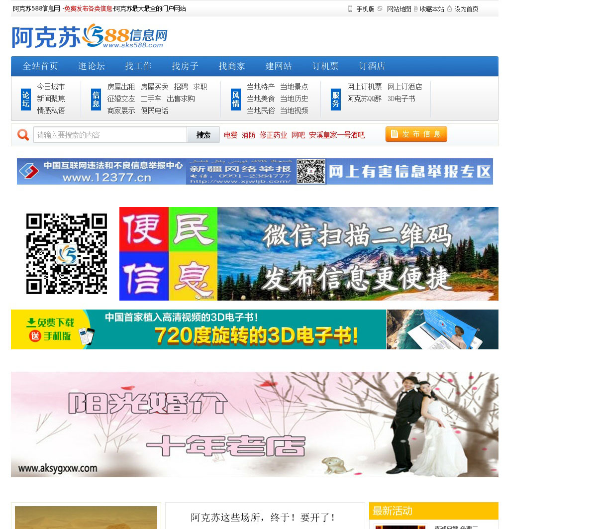 阿克苏588信息网是一个提供阿克苏地区免费发布:房产信息、招聘求职、二手买卖、二手汽车、征婚交友、阿克苏资讯的全方位综合阿克苏信息的门户网站