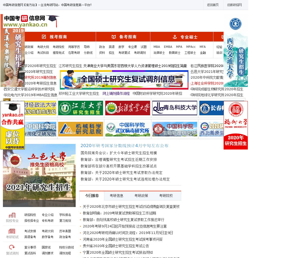 中国考研信息网--国内权威考研门户网站。提供研究生招生简章,考研大纲解析,考研报名攻略,考研复习指导,考研经验,考研试题,考研成绩查询,考研分数线,考研调剂,考研复试等考研信息。