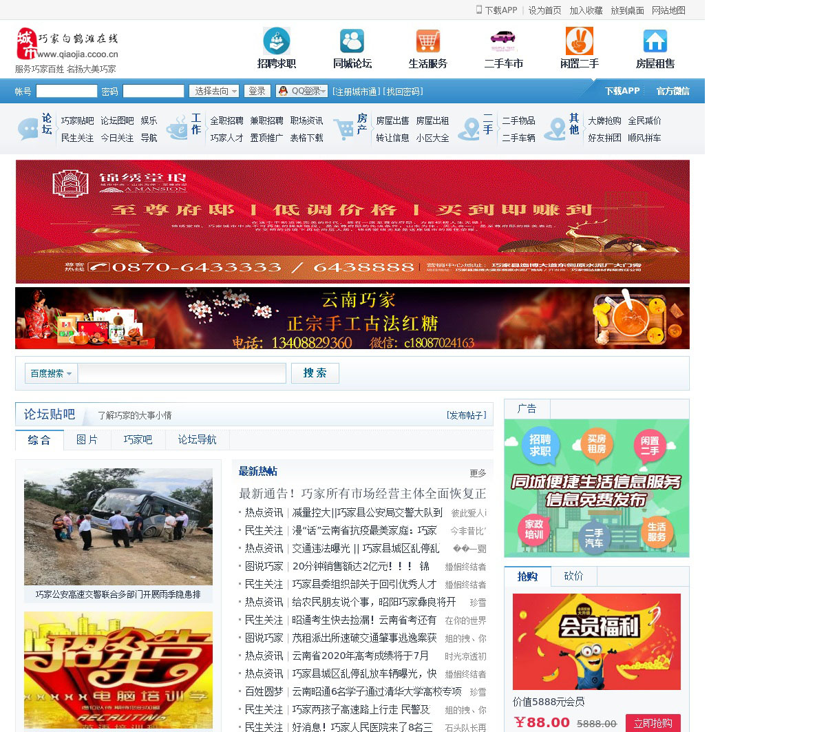 巧家县第一家地方生活资讯门户,为您提供巧家及周边旅游特产、小吃美食、新闻热点、房产新楼盘、招聘求职、家居建材、婚嫁影楼、论坛贴吧、商家企业黄页电话等综合信息。