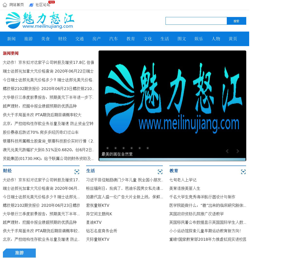 魅力怒江是综合门户网站,提供资讯、旅游、美食、财经、交通、房产、汽车、教育、文化、生活、图文、娱乐、体育、黄页、人物等服务。