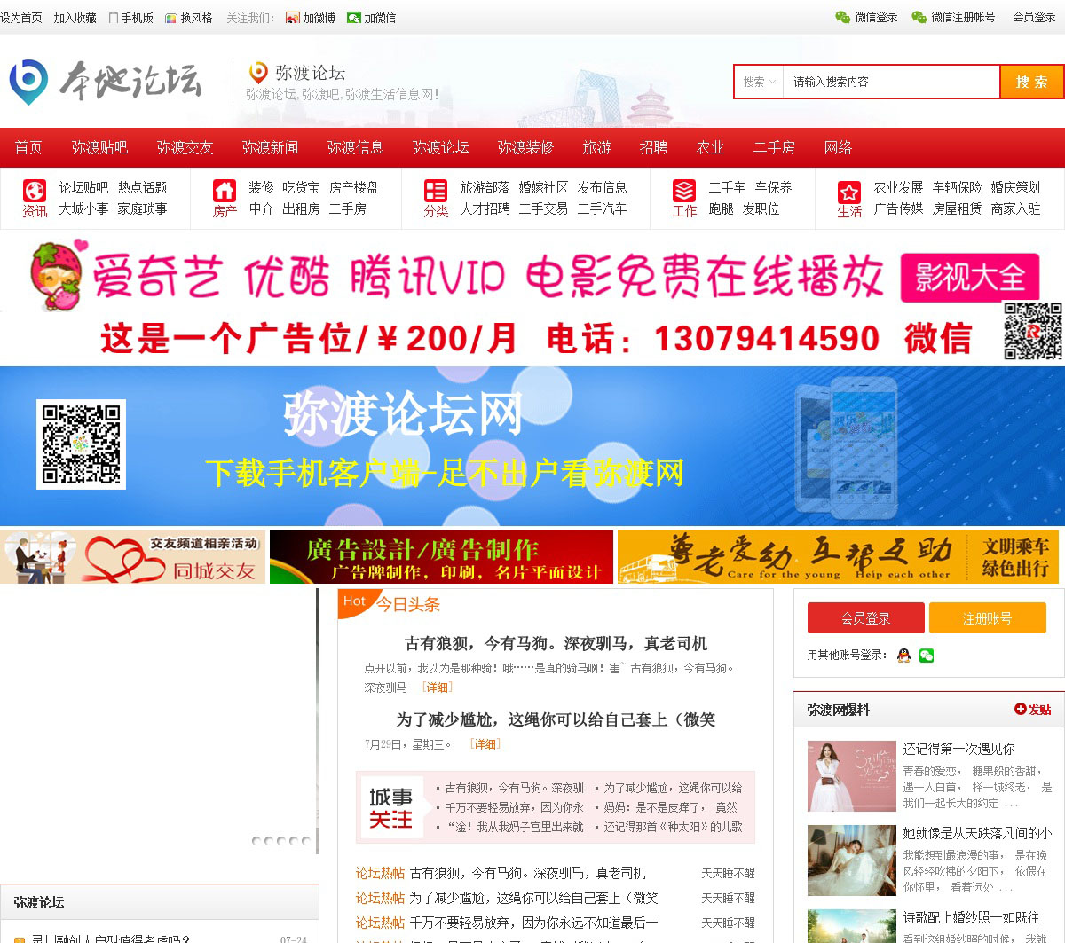 弥渡论坛,弥渡本地综合门户网站,弥渡论坛致力于打造最贴近于百姓生活的论坛,成为省内论坛规模大,用户数量多、口碑好、社区服务完善的综合社区