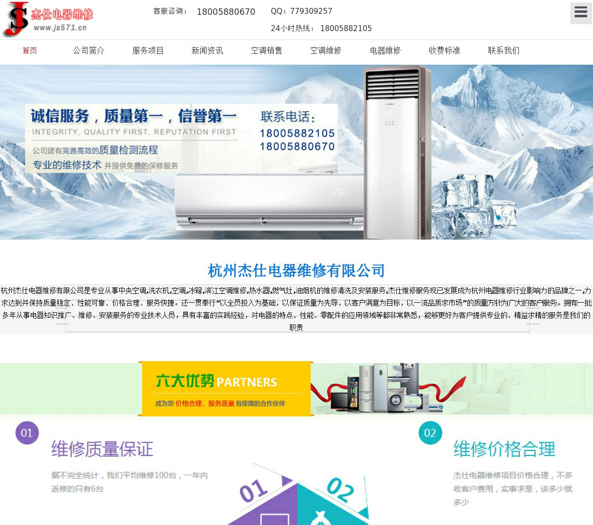 杭州杰仕电器维修有限公司拥有二十余年的杭州家电维修行业从业经验,多年来从事杭州洗衣机维修,杭州空调维修,杭州冰箱维修,滨空调维修,杭州热水器维修的电器维修公司,我们愿意为您提供优质的杭州中央空调维修,滨空调维修,杭州空调维修,杭州冰箱维修,杭州热水器维修服务,联系电话: