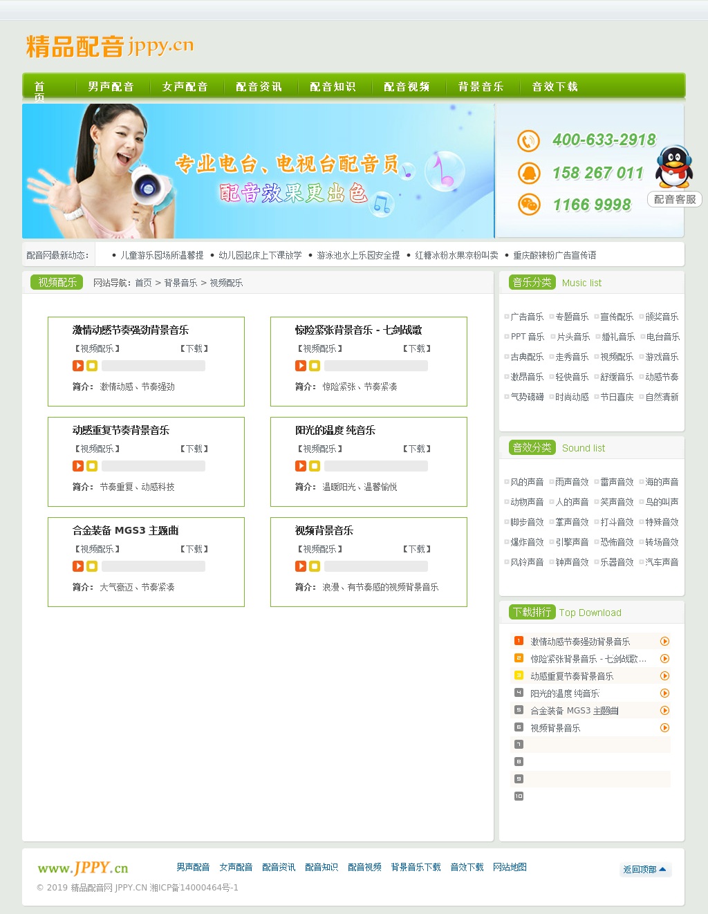 精品配音网是中国最专业的配音网站,广告配音,专题配音以及宣传片配音。同时提供音效,背景音乐等配音素材下载.
