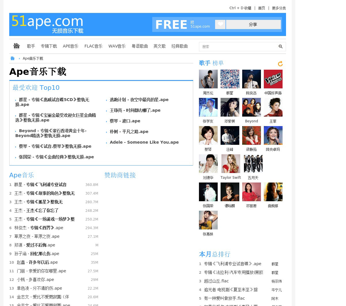 51Ape.Com是一个免费提供无损音乐下载的网站,专注于Ape音乐、Flac音乐以及Wav等各类高品质无损音乐的免费下载,致力于做国内最好的无损音乐下载网站