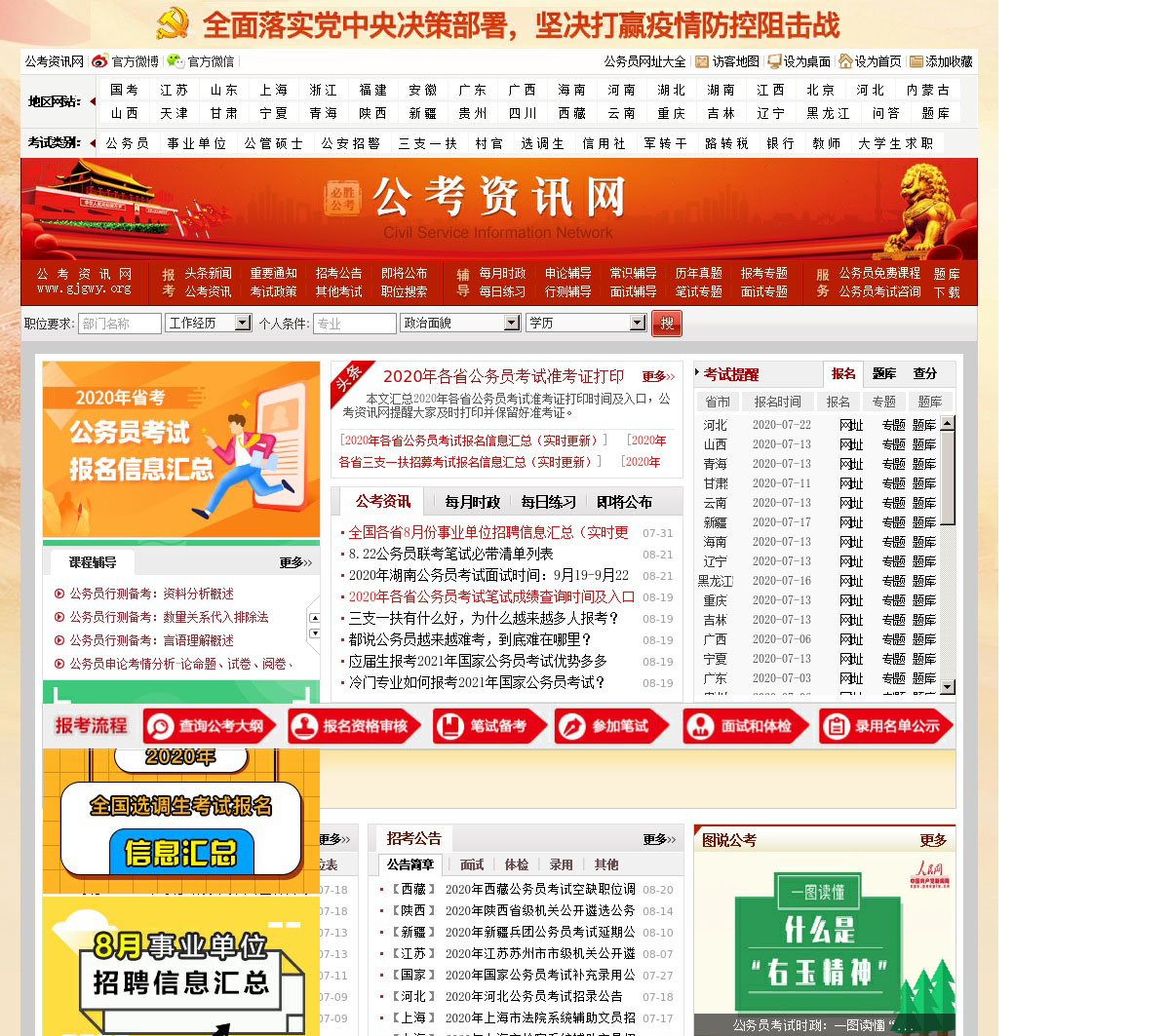 国家公务员考试网是国内公务员考试在线信息平台,线上整合了2019年最新国家公务员考试时间、职位表、考试大纲、考试真题、成绩查询、笔试面试等所有相关国家公务员考试的一手资料,所有关于国家公务员考试资讯时时更新;找国家公务员考试信息,就来国家公务员考试网。