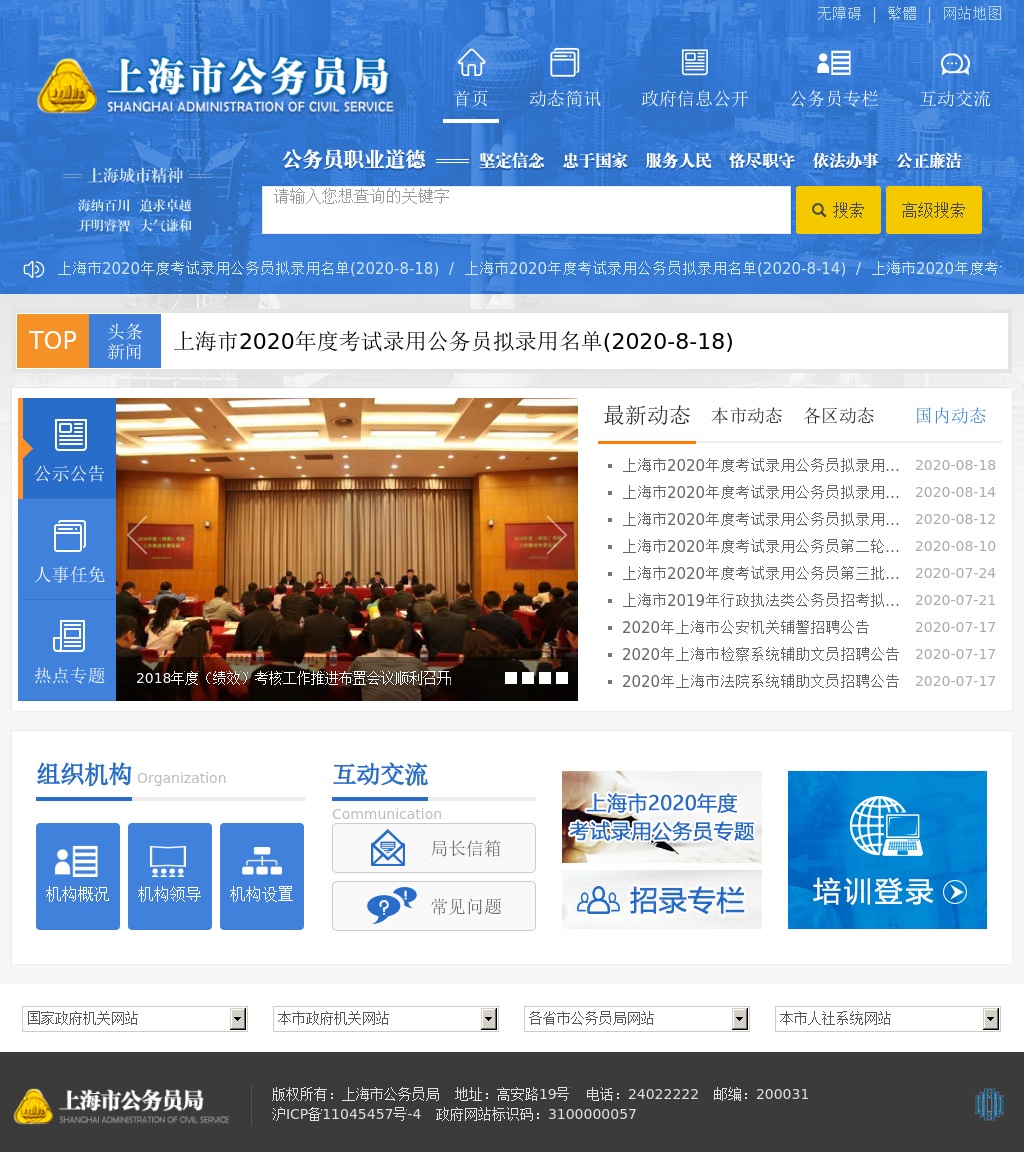 | 上海市公务员局 | 232 | 上海公务员考试网 | 65 | |