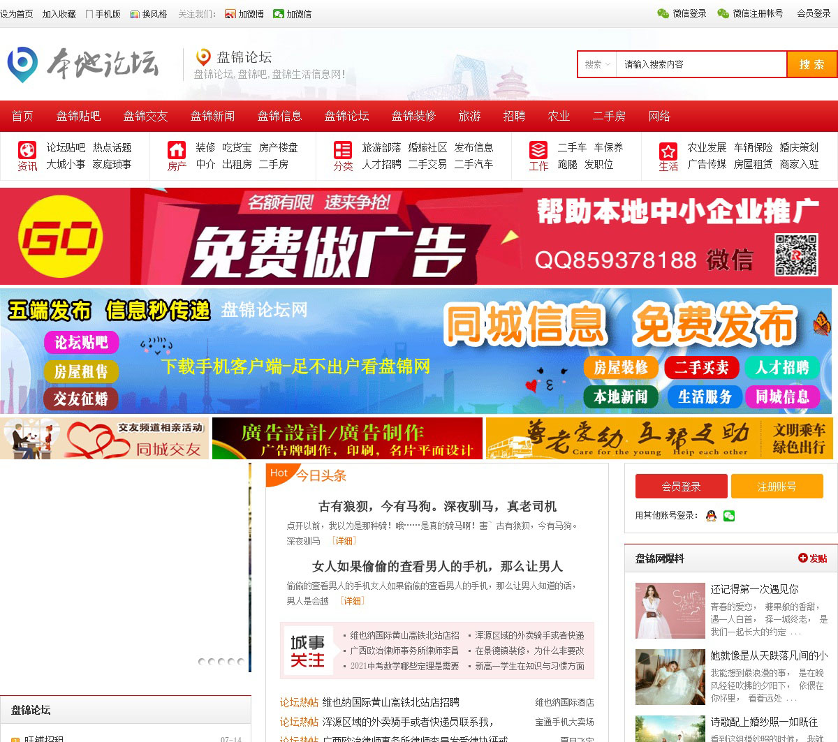 盘锦论坛,盘锦本地综合门户网站,盘锦论坛致力于打造最贴近于百姓生活的论坛,成为省内论坛规模大,用户数量多、口碑好、社区服务完善的综合社区,汇聚盘锦论坛,盘锦新闻,盘锦房产,盘锦家居,盘锦汽车,盘锦信息网,盘锦美食,盘锦购物,盘锦婚庆,盘锦天气,盘锦教育,盘锦旅游,盘锦财经,盘锦分类信息等众多优质频道。