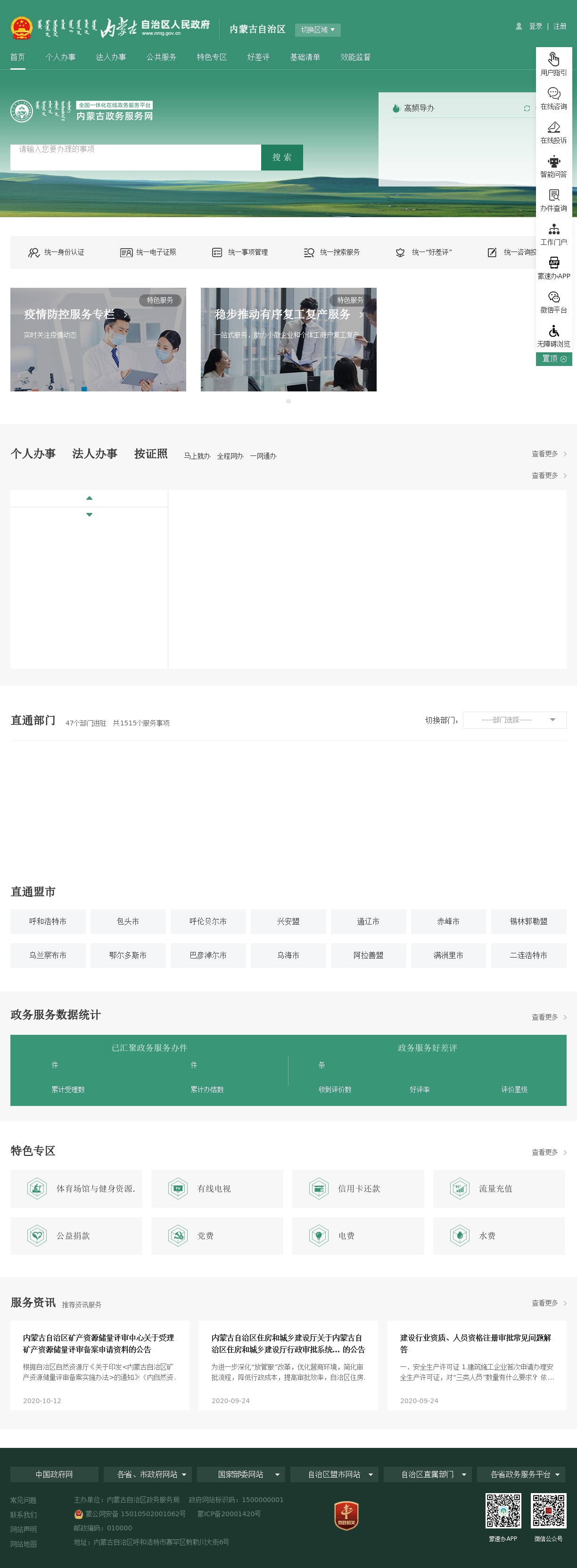 | 暂无 | 政府机关 | 蒙ICP备05000248号 | 内蒙古自治区政务综合门户网站 |