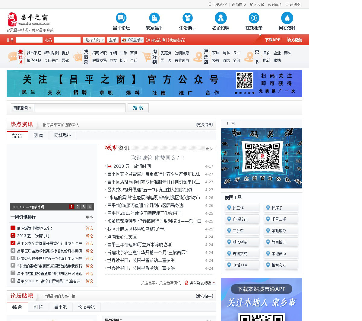 昌平之窗,提供昌平概况,地图,旅游,资讯,娱乐,分类信息,论坛,博客,企业,商家等综合信息。