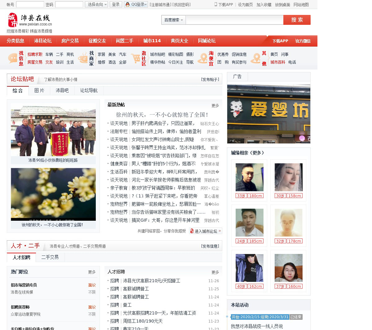 沛县在线是沛县的综合性门户网站,为沛县人民提供沛县房产,沛县新闻论坛,沛县二手交易,沛县交友征婚,沛县人才招聘,沛县团购,沛县商家等信息,致力打造沛县综合信息门户网站。