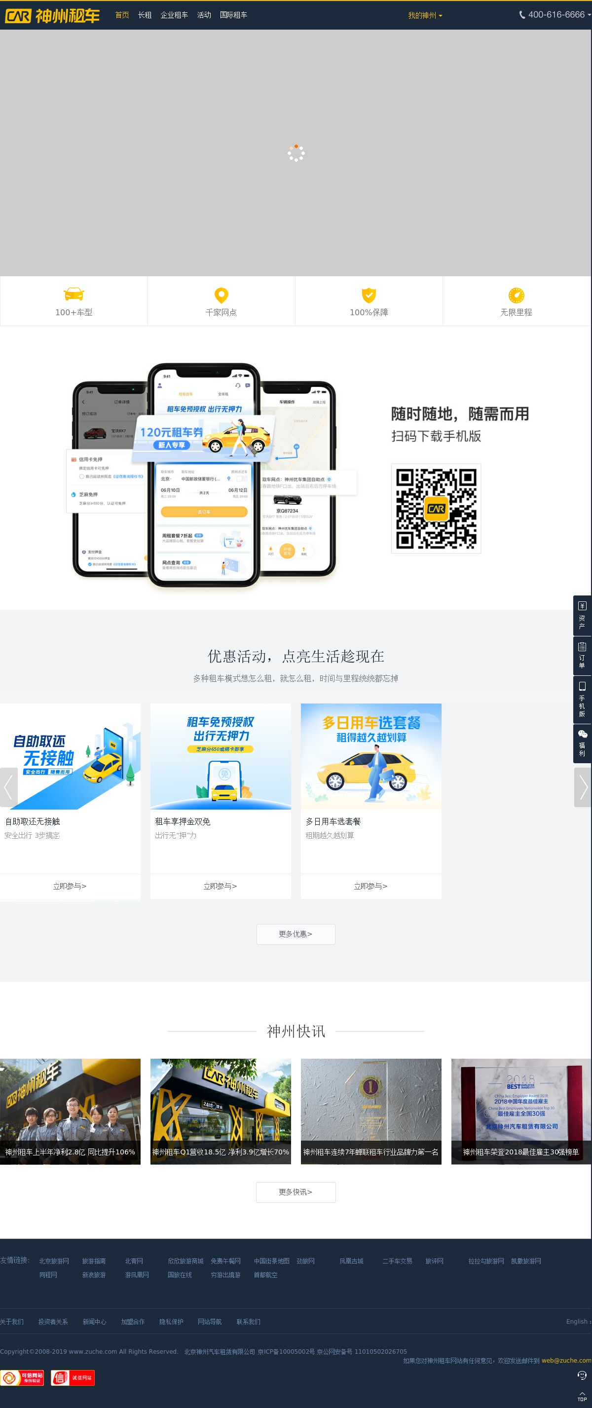 神州租车,亚洲租车大品牌,全国千家网点,+车型任选,无限里程,%保障,还免预授权免违章押金;智能取还,随需而用,*小时客户服务。tel:--