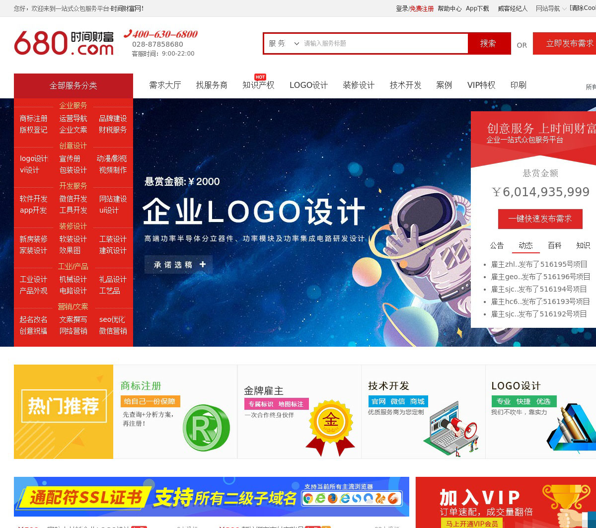 时间财富网是威客行业领先的众包服务平台。是雇主和威客值得信赖的威客网站,其中服务品类涵盖知识产权、商标注册、logo设计、平面设计、网站建设、文案策划、装修设计等为主的400余种现代服务领域。时间财富网致力于为广大需求者解决各种实际性需求问题,打造全方位的创意服务。