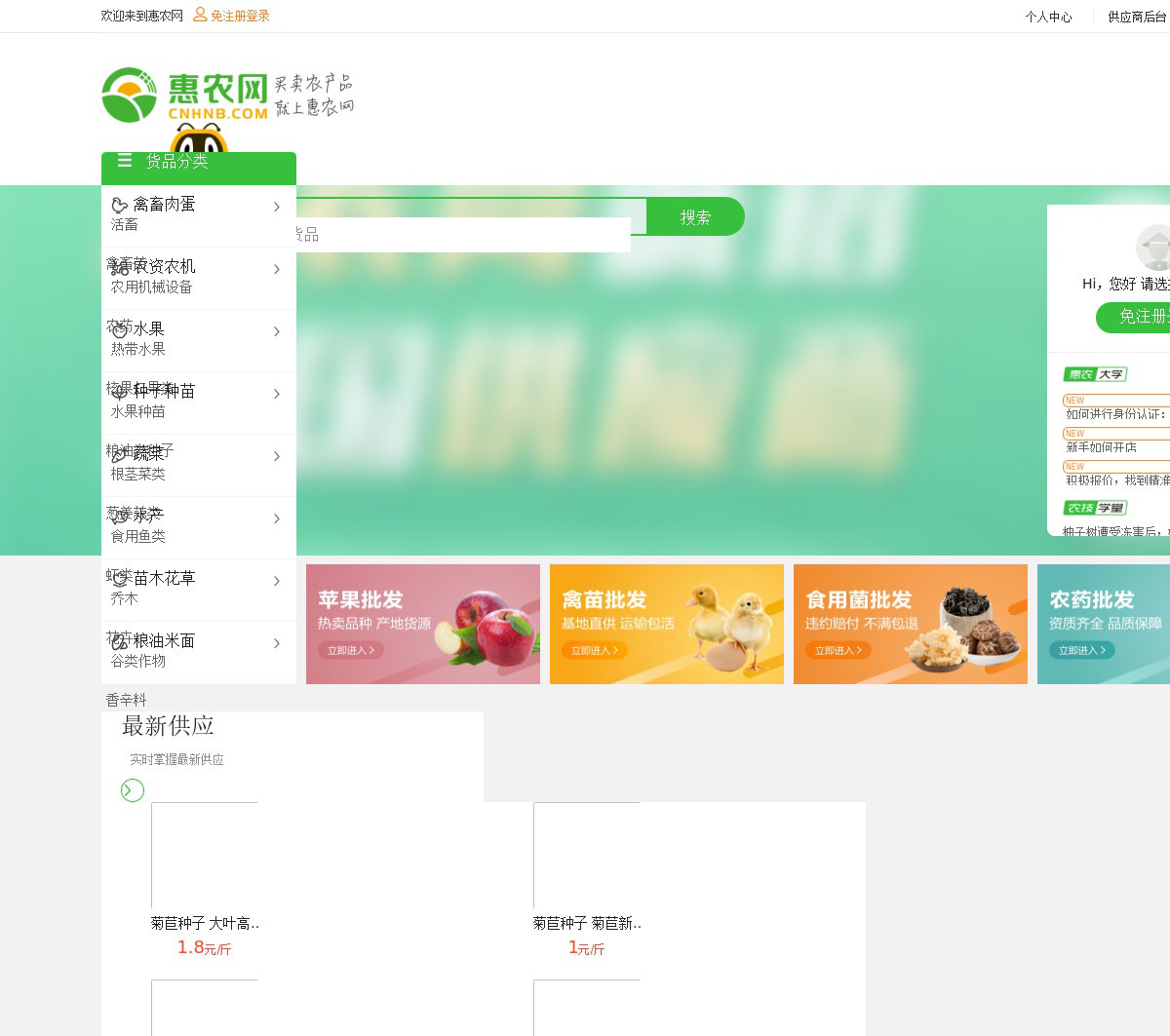 惠农网作为专业的线上农产品批发交易市场,用户不仅可以在平台上免费发布农产品供求信息,了解中国农产品价格行情,进行农产品批发和农产品交易。买卖农产品就上惠农网。