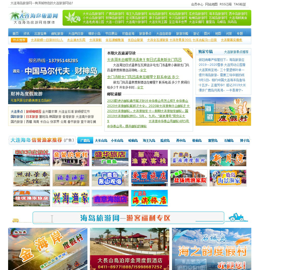 大连海岛旅游网【13年海岛旅游门户站】,多年来为来大连旅游的游客提供大连旅游图片,大连旅行攻略,大连海岛游介绍,长海县旅游,大连旅游景点门票预定,大连旅游攻略大连到国内旅游,大长山岛旅游,广鹿岛度假村,小长山岛钓鱼,哈先岛渔家,獐子岛海鲜,以及大连一日游等旅游咨询服务。