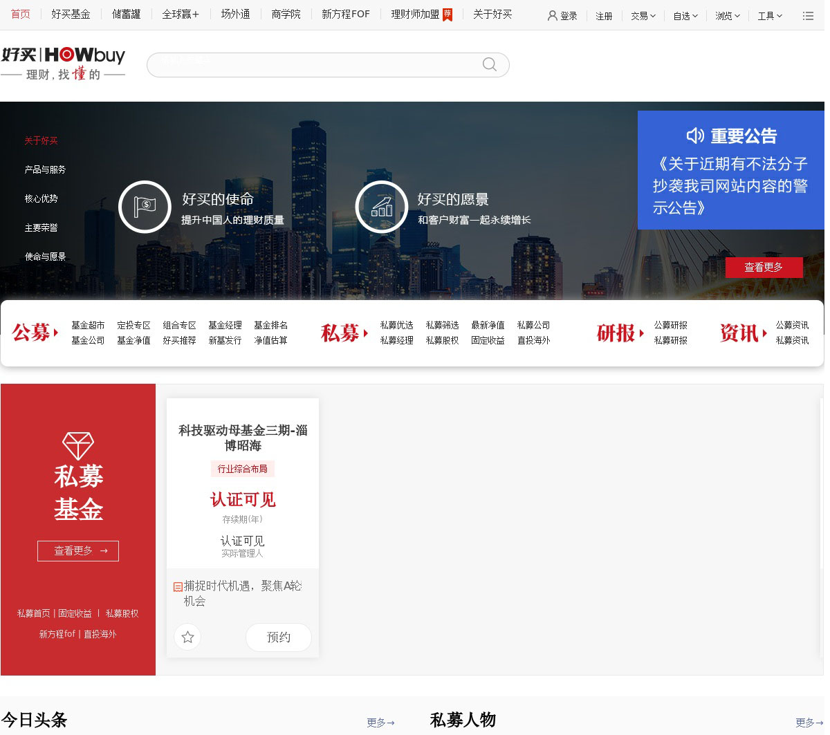 好买基金网(好买财富、好买基金研究中心),是中国领先的第三方投资顾问公司。好买财富拥有独立基金销售牌照,将为您提供公募基金、私募基金、私募股权基金、固定收益、FOF/TOT、一对多等上千种基金的投资建议和专业资产配置服务。每日提供即时的开放式基金净值,基金排名,基金评级,私募基金净值,私募基金排名。