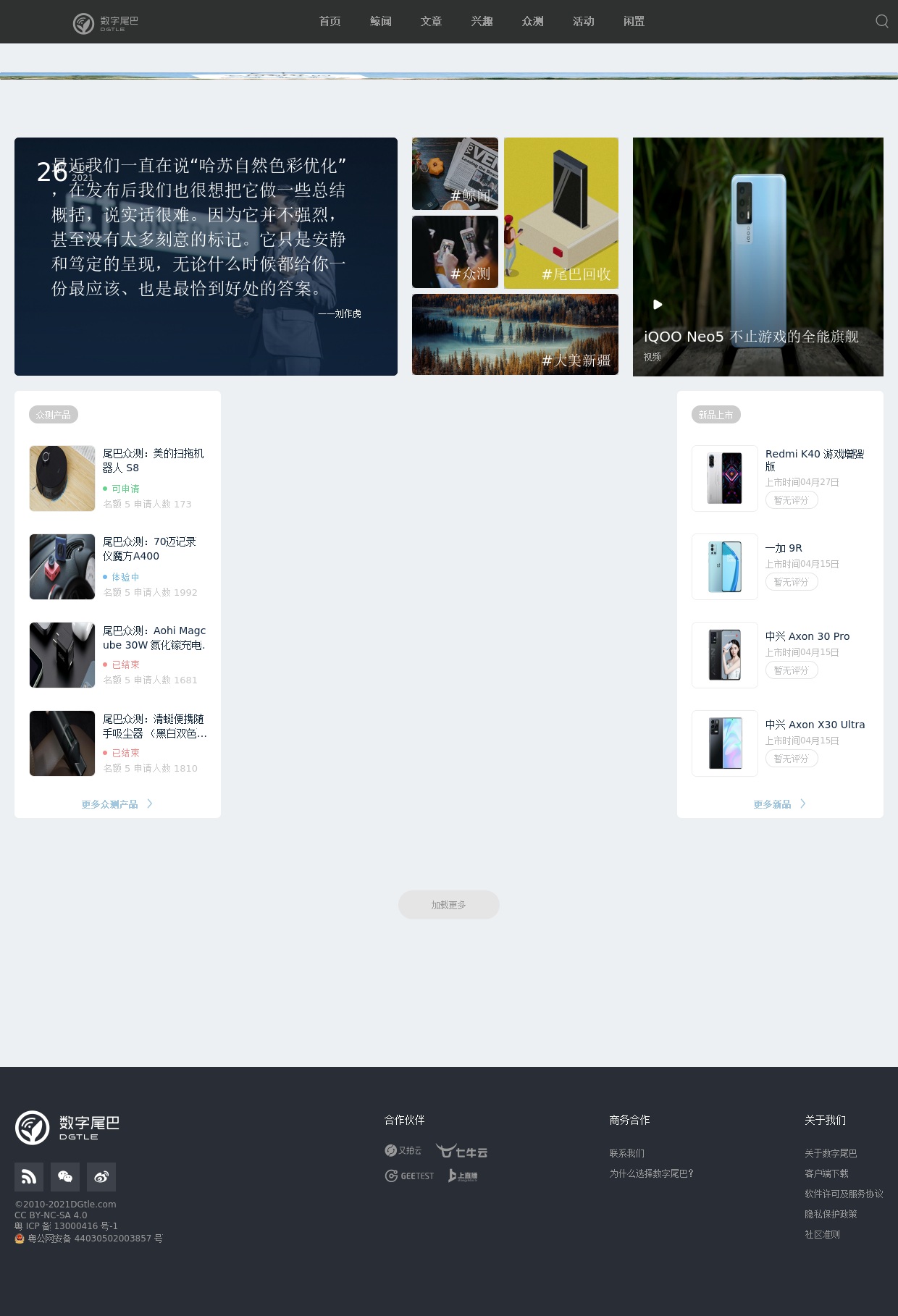 致力于分享美好数字生活体验,囊括你闻所未闻的最丰富数码资讯,触所未触最抢鲜产品评测,随时随地感受尾巴们各式数字生活精彩图文、摄影感悟、旅行游记、爱物分享。旗下产品:精品电商平台「尾巴良品」 ;移动客户端「数字尾巴」 ,覆盖 iOS、Android 两大主流平台。