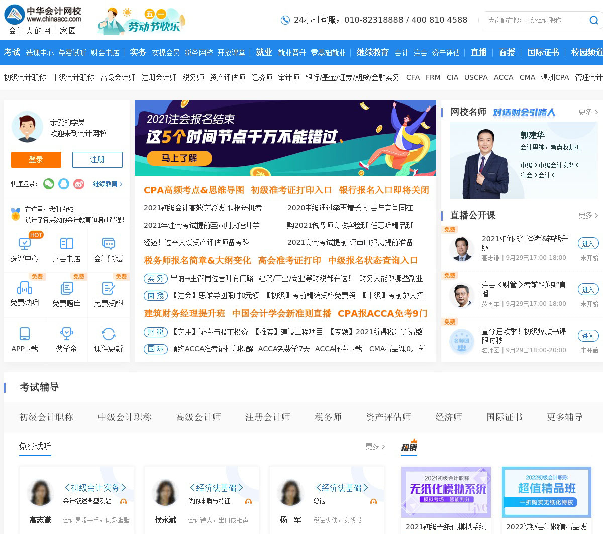 会计网校是专业的会计门户网站,会计培训著名品牌!会计网校常年从事初级会计职称考试,中级会计职称考试,注册会计师考试(cpa),税务师,资产评估师,高会,经济师,会计继续教育等各类网上培训,会计网校官网登录后可免费领取备考资料、试听课程、每日练题、模拟考试等会计备考服务。会计网校20年备考经验,教学实力雄厚,培训效果显著。