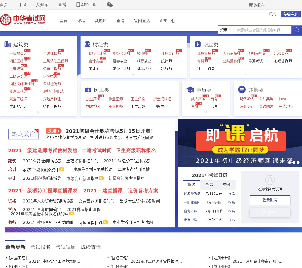 中华考试网专业教育培训与学习软件下载网站,为您提供官网成绩查询信息、2021全国考试时间表、人事考试网报名入口、国家医学考试模拟题库、建筑工程考试复习计划、职业资格报考条件、金融财会考试大纲、历年真题答案与网校培训招生简章