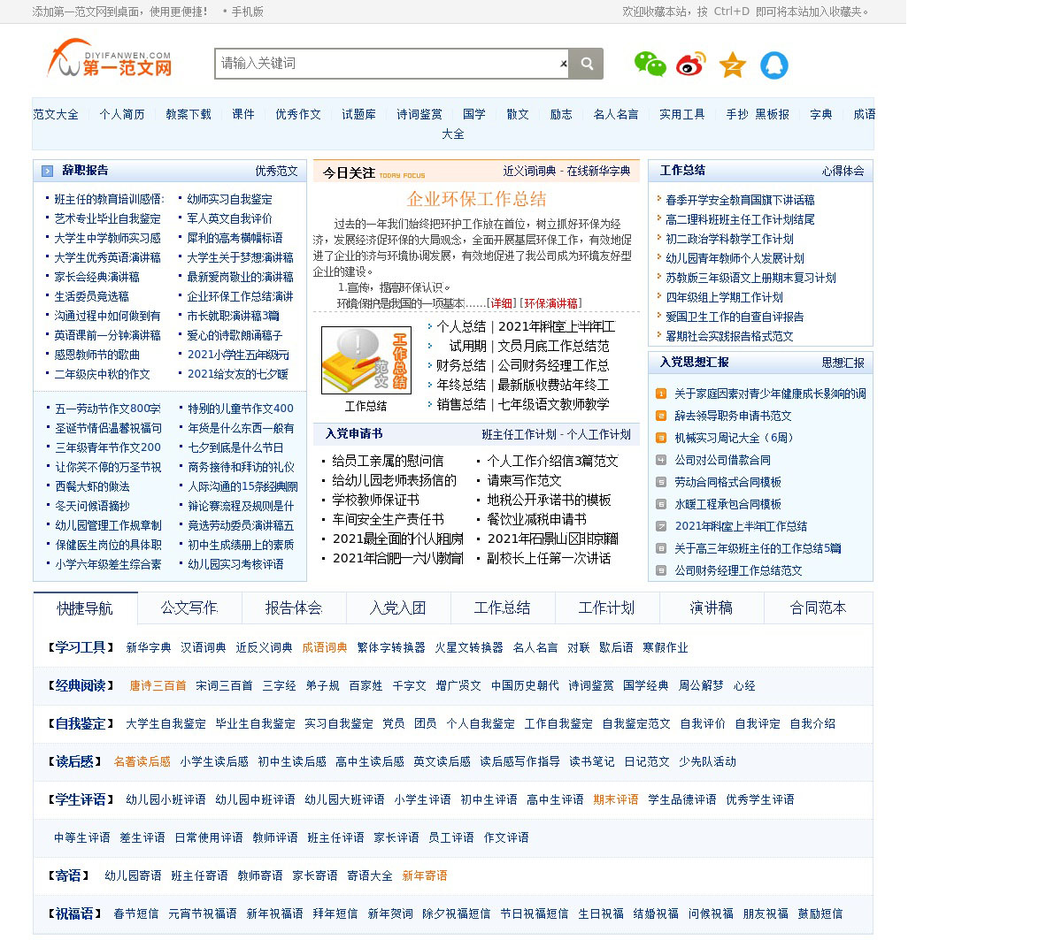 各种日常写作指导,同时提供范文参考。主要栏目有:范文大全、个人简历、教案下载、课件中心、 优秀作文、考试辅导、试题库、诗词鉴赏。