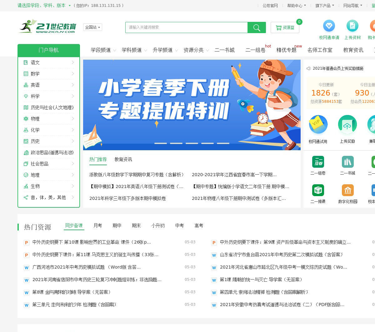 国内排名前列的中小学教育资源网,提供全国中小学各版本教材的课件教案学案备课素材试卷练习等资源下载。资源多、时效强、质量高,是中小学老师学生们的最佳选择