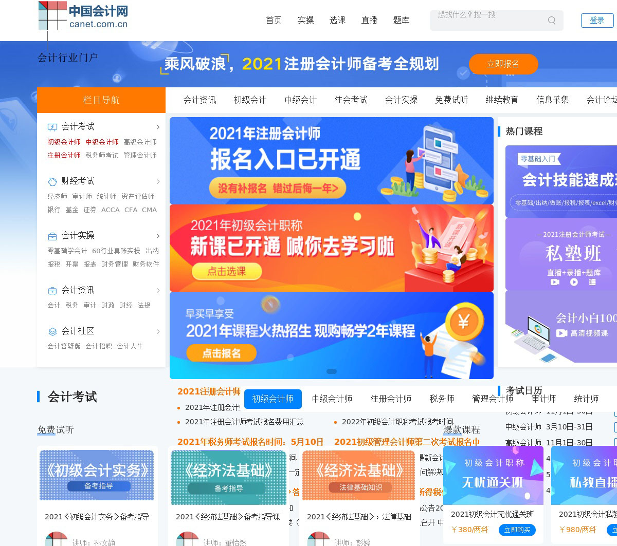 中国会计网是中国会计行业门户网站,站内发布会计行业资讯,一站式会计考试报名服务,包括初级、中级、高级会计师、注册会计师等会计培训服务,提供会计实操课程、会计论坛交流、继续教育、信息采集、税收实务、财税法规等服务.