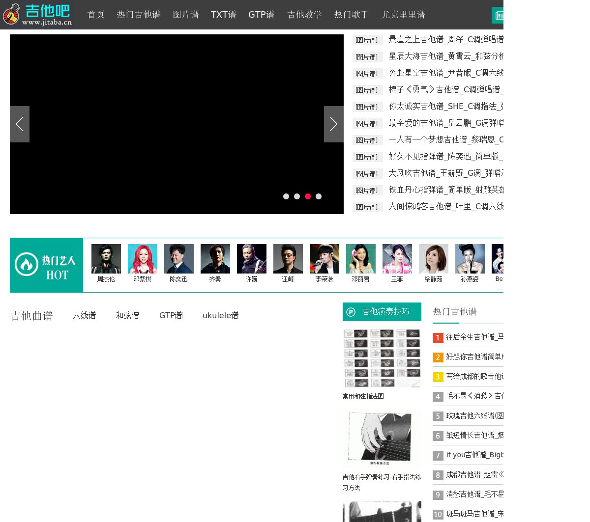 吉他吧(www.jitaba.cn),提供丰富的吉他谱和吉他教学资源,每日更新包括最新最热门的流行歌曲吉他谱(六线谱、和弦谱、GTP谱)