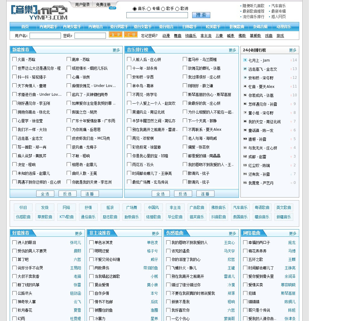 YYMP3流行音乐网提供最好听的歌曲免费在线试听的音乐网站。收录了网上最新最流行的mp3音乐,网络歌曲,非主流,DJ音乐,伤感歌曲,经典老歌等等mp3歌曲,是您寻找好听的歌曲首选网站。
