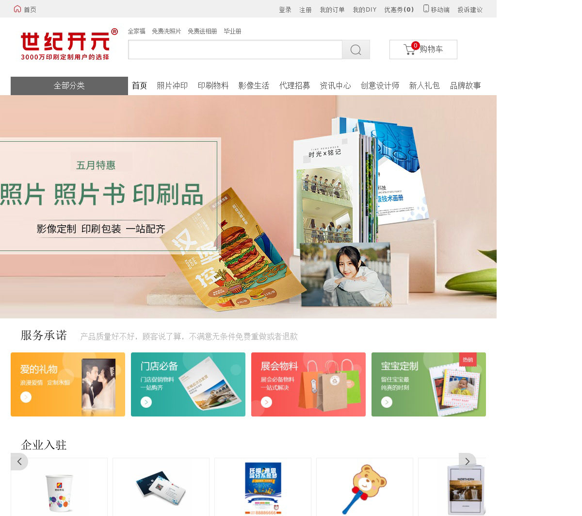 世纪开元DIY个性定制网站、网上冲印照片、在线定制照片书、名片定做、宣传单、企业定制画册、企业台历、挂历、办公用品、纪念册、水晶版画、影集相册、台历挂历、T恤、马克杯、明信片、创意礼物等、每月免费冲洗20张照片、数万设计师提供全网最丰富的制作模板供您选择。