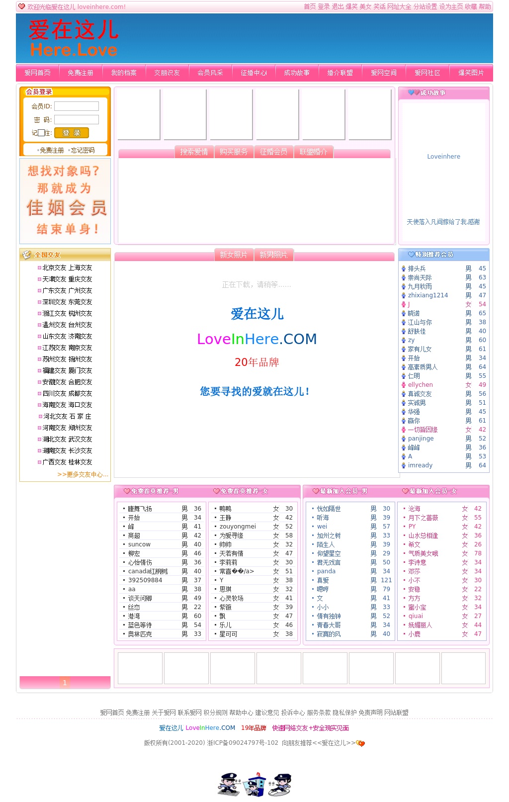 爱在这儿大型征婚交友网,会员注册免费,发信和看信也都免费,成功率又高,是广大单身朋友交友的好地方。