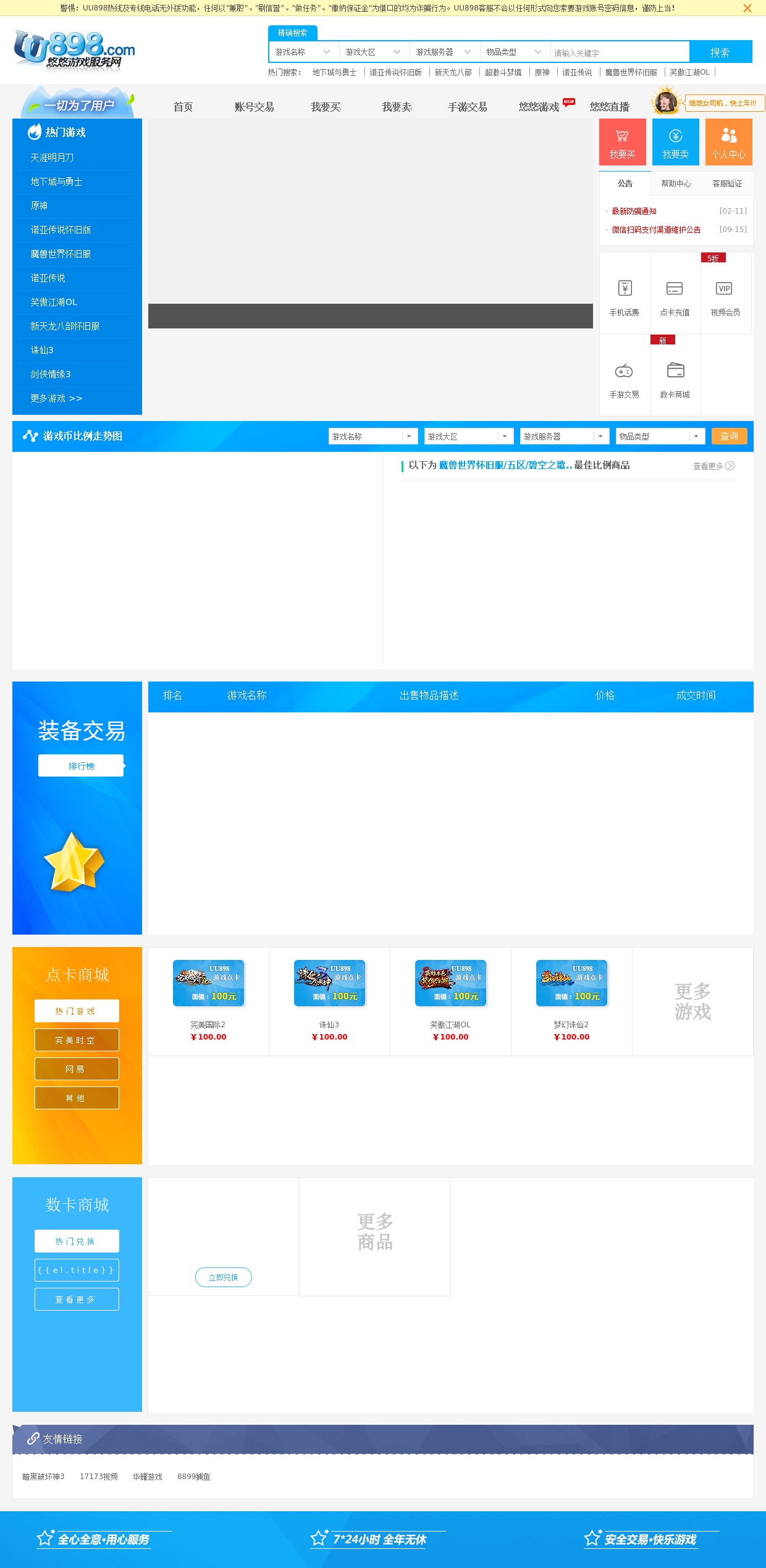 悠悠游戏服务网uu是一个网络游戏交易平台,真诚为广大玩家提供手游、游戏币、游戏账号、点卡、装备、金币元宝、等交易服务,游戏交易就上uu.com!