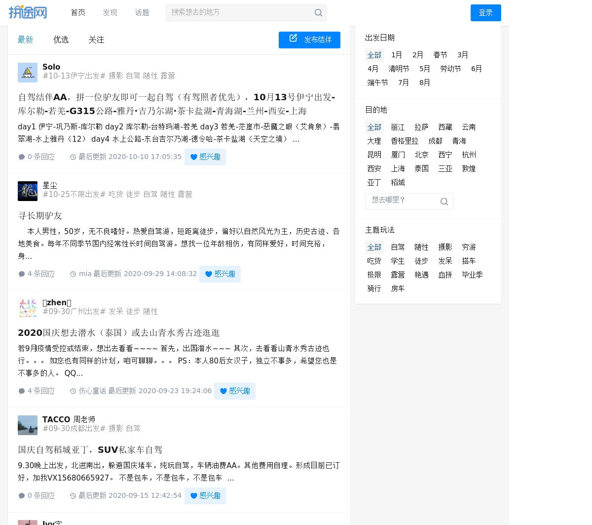 | 结伴旅行 | 4 | 自驾游结伴 | 1 | |