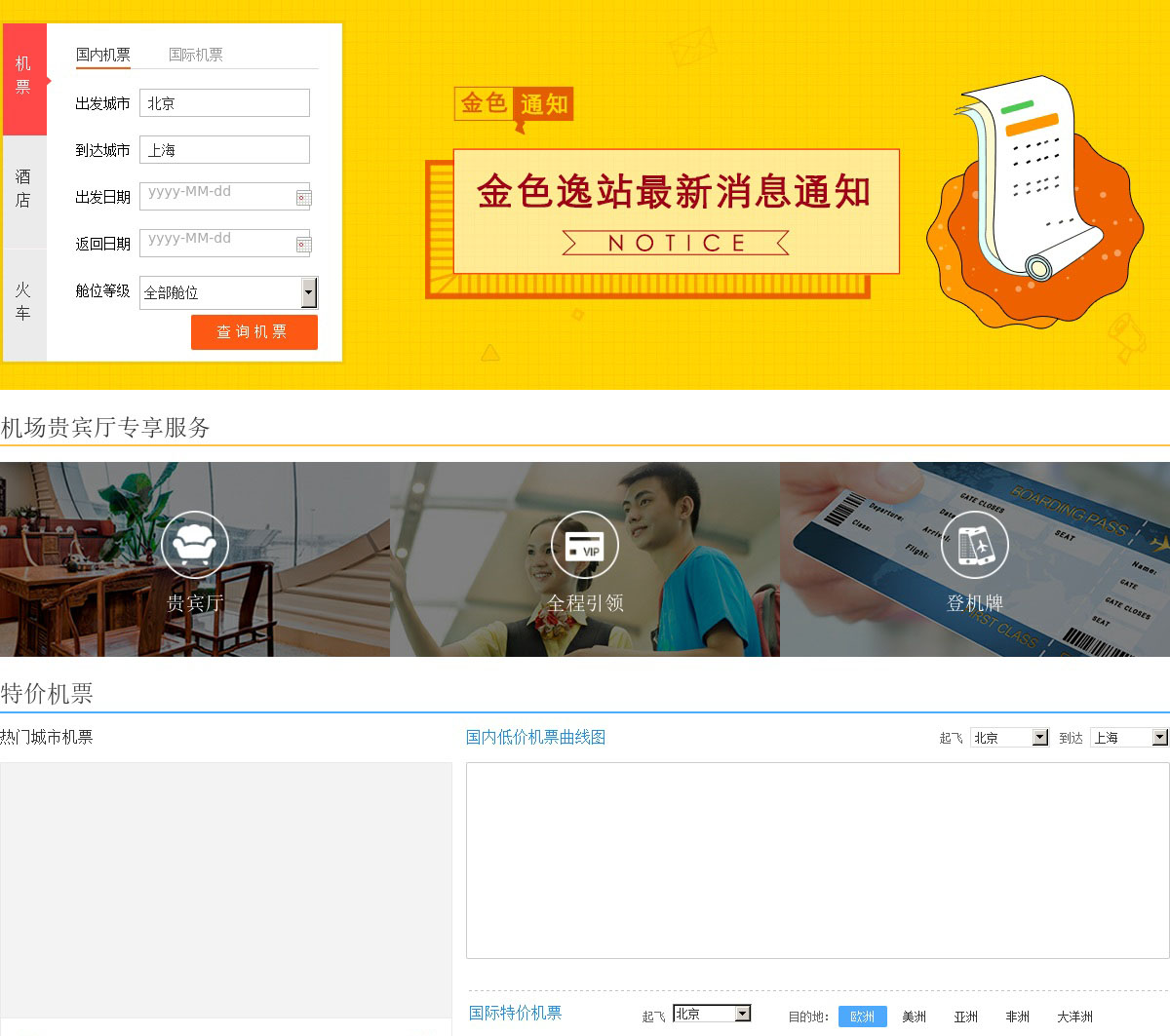 金色世纪商旅网一站式商旅度假服务,提供机票查询预订及酒店预订等服务,(-折机票)另有更多特价机票,打折飞机票及酒店返现,网上订机票,网上预订酒店,机场贵宾厅,机场贵宾服务,租车服务等供您选,金色世纪dd商旅全程管家服务模式。