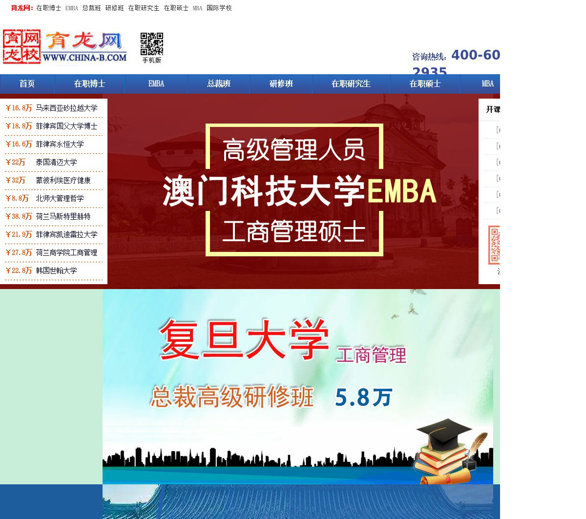 育龙网提供在职研究生招生资讯,包括EMBA报名时间、在职博士招生简章、在职研究生报考条件、在职硕士考试科目等。