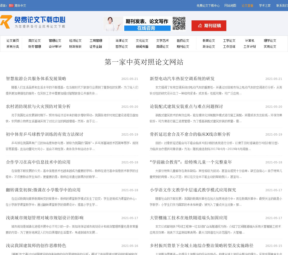 第一家中英对照论文网,找免费论文,下载论文,就上免费论文下载中心,覆盖法律,英语,教育,经济,管理等个论文分类,万余篇免费论文范文,是最专业的论文下载网站。
