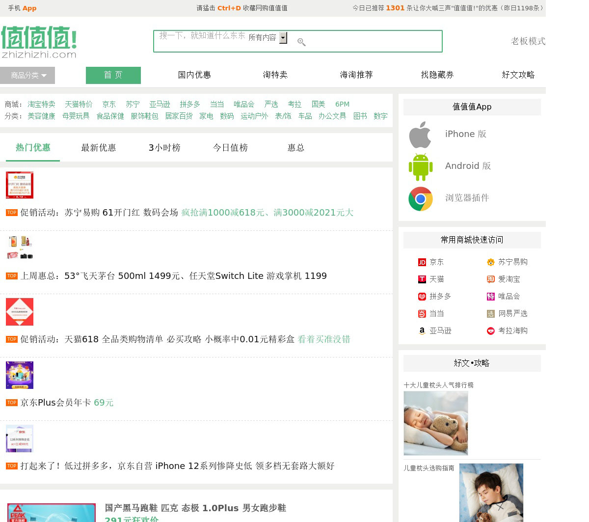 网购值值值是一个特价搜索引擎:实时监控全网什么值得买类资讯和爆料,每日同步推荐1000+高性价比商品和打折促销活动。让你在第一时间,一站式获取全网优惠券和特价信息
