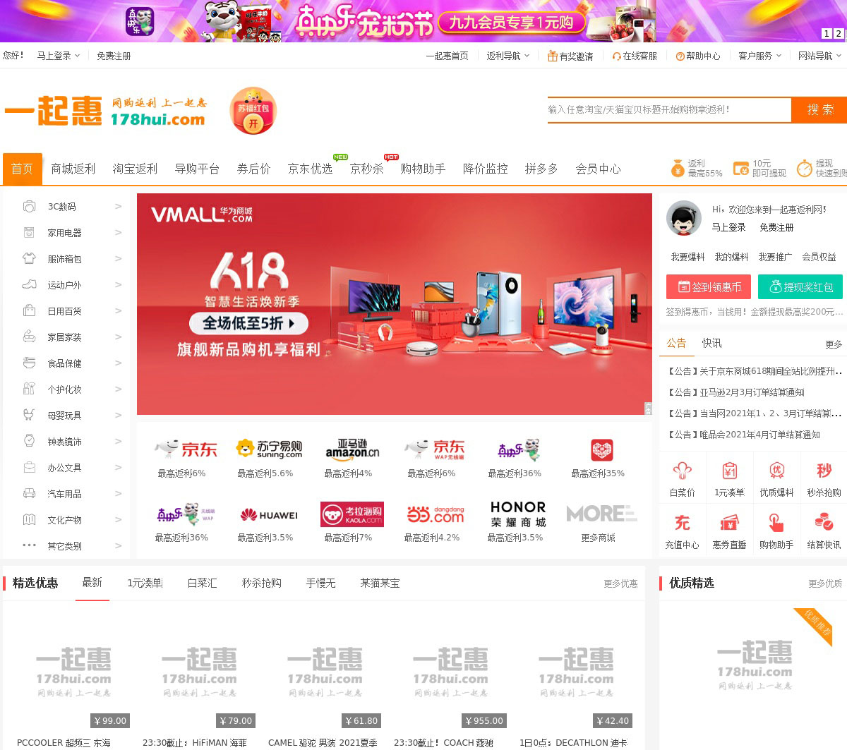 一起惠返利网(178hui.com)是国内返利佣金高、结算速度快、服务质量好的专业返利网站,一起惠还提供商城返利、淘宝返利、优惠券免费领取、惠券直播、商品导购、购物资讯等等服务,是一家综合返利网站!一起惠返利网让您尽享低价购物乐趣!