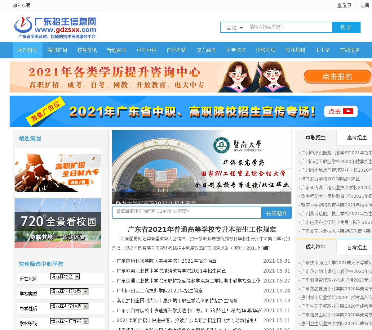 广东招生考试信息网是发布各类招生考试信息的网络平台,是考生了解高考、中考、自考、成考、技校招生考试信息的主要渠道,也是大中专院校招生宣传的核心利器!