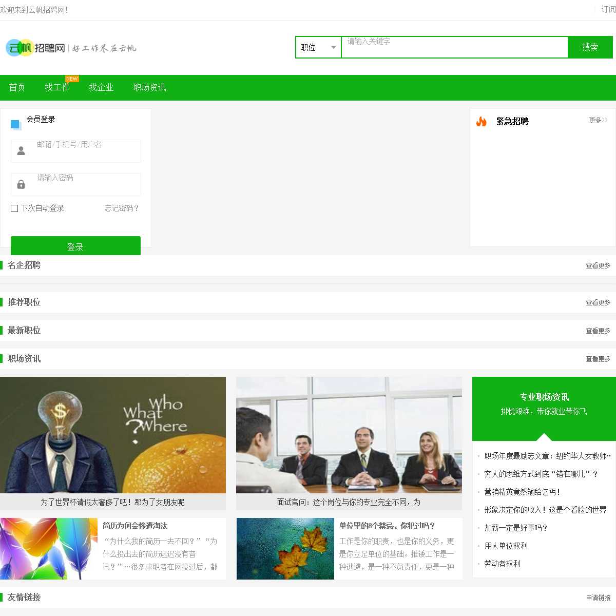 云帆招聘网(http://www.yunfan.com)大品牌的招聘网站,规模大信息真实的专业招聘网站,最新招聘信息,找工作,上云帆招聘网!