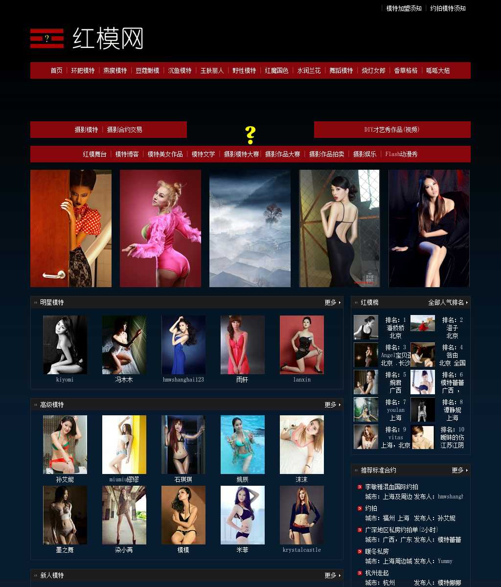 中国最大的摄影模特专业网站。时装模特、内衣模特、人体模特、T台模特应有尽有。摄影合约交易、DIY才艺秀,模特开心赚钱、大人开心娱乐,舞台无处不在。网站追求商业化的运作,试图让每一个会员都获得公开透明、公平的自我价值实现的机会或娱乐的体验。