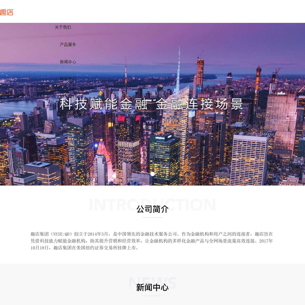 趣店集团创立于年月,是中国领先的金融技术服务公司,旨在凭借科技能力赋能金融机构,助其提升营销和经营效率,让金融机构的多样化金融产品与全网场景流量高效连接。
