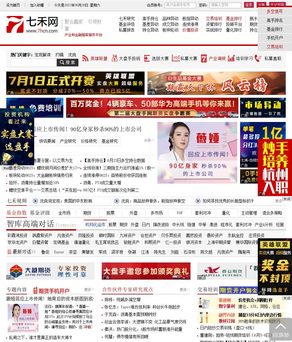 七禾网www.hcn.com是杭州七禾网络科技有限公司官网,成立于年月,主要内容为金融研究、产业研究、基金研究、价格研究。七禾网是服务于现货产业、期货和证券行业、基金行业、上市公司、各类投资机构的智库研究机构和专业网络平台。以“产业和金融智库研究服务平台”为定位,期待能用专业的力量,与各方合作,为实体经济和金融行业提供高品质的智力服务。