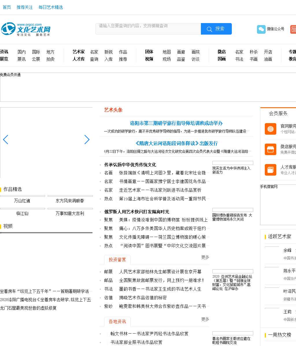 文化艺术网(www.orgcc.com)于年月立项,由博艺信息科技有限公司负责全权运营,以“专注文化、服务艺术”为宗旨的大型文化艺术类综合门户网站,为艺术家,团体机构,画廊,美术馆,画院提供官网建设、在线展览、博艺微店、书画销售、电子画册,艺术视频访谈,博艺画廊联盟等服务。