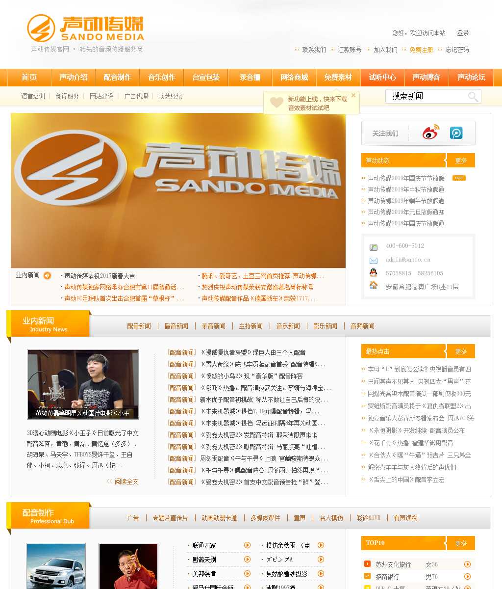 【声动传媒www.sando.cn】是中国专业音频制作公司,声动以配音,配乐,配音网,配音网站,配音公司,广告配音,专题片配音,宣传片配音,动画配音,游戏配音,中国配音网,多媒体配音,课件配音,小语种外语配音,英语配音,合肥配音,安徽配音,彩铃配音,名人明星模仿配音,电视购物直销片配音,解说配音,纪录片配音,国语配音,专业配音网,配音素材,配音演员,原创音乐企业歌曲制作,录音公司,声音制作,音频制作为主业的传媒公司。