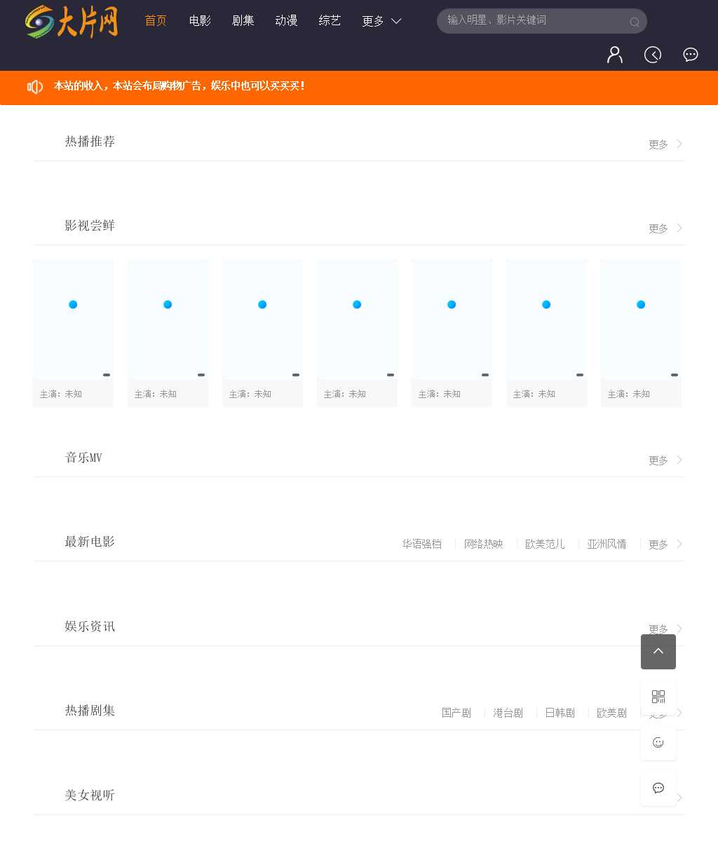 大片网,是专门做剧集,电影等在线播放服务,主要内容包括:电影海报、电影简介、电影剧情、电影赏析、电影评论、电影下载、在线电影等等。目的主要是为了与网友分享欣赏电影的乐趣,大片网致力于提高国人的影视欣赏和审美水准。