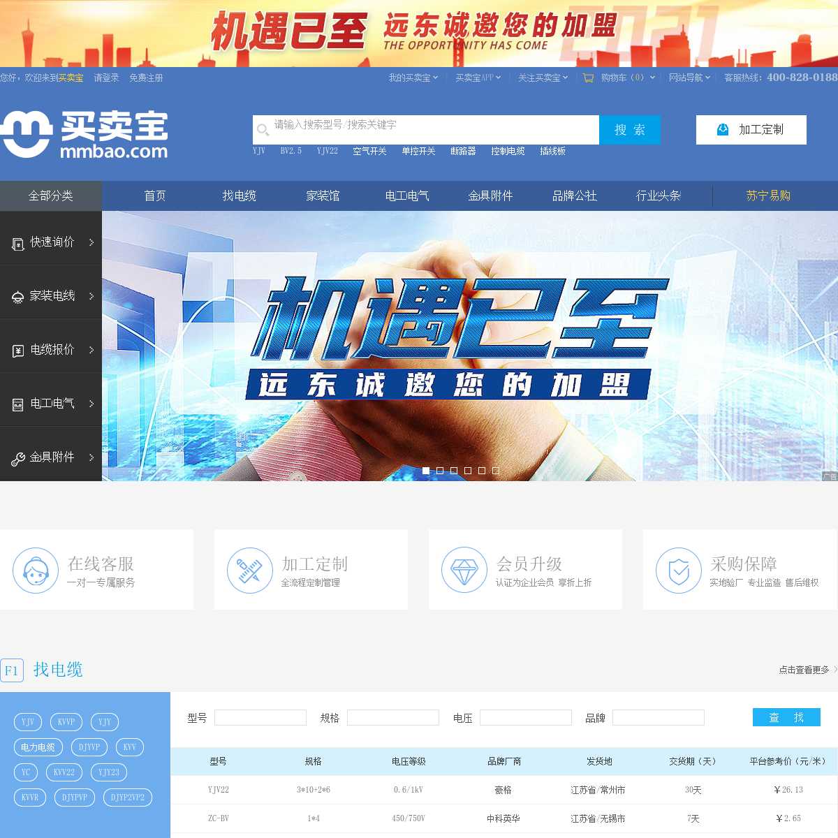 买卖宝(mmbao.com)是专业的电线电缆和电工电气电子商务服务平台,以电线电缆的定制、现货、配套金具附件,家装线及电工电气等产品的采购和销售为主体,为客户提供从采购、销售、支付、物流、质检及金融等服务为一体的一站式解决方案!