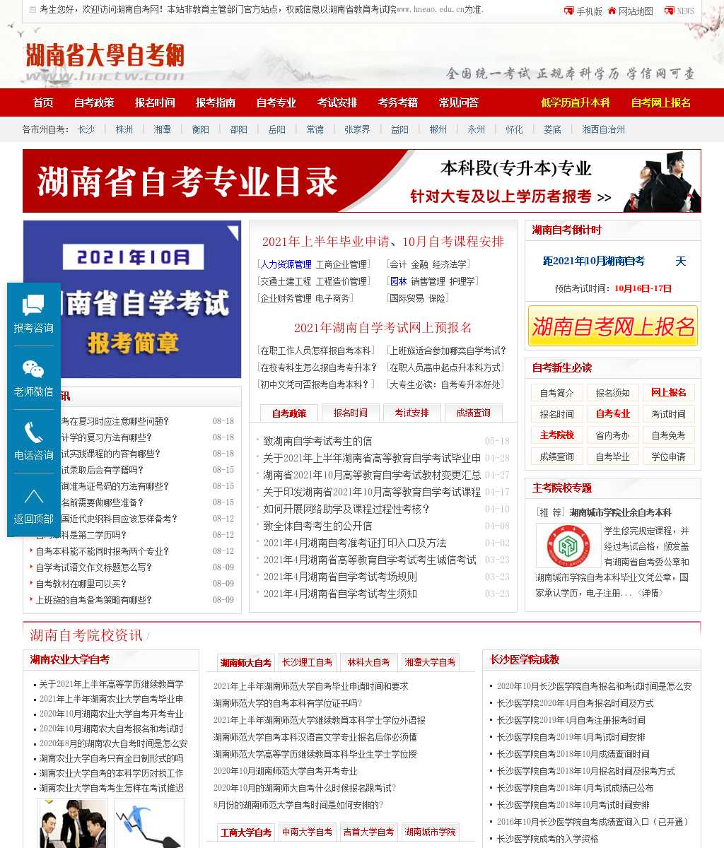 湖南自考网-湖南地区专业的自考报名网站,提供湖南省内各主考院校自考报名时间,自考成绩查询,湖南自考本科文凭全国认可,湖南自考网上报名系统的考生享受全程辅导,顺利指导学生答辩及毕业.