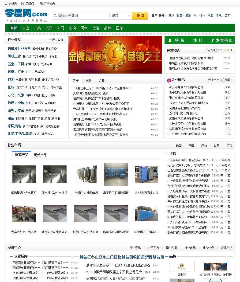 零度网 为企业提供免费发布信息平台,产品推广,电子商务等汇集全国各行业包括机械工业、电子电器、能源化工、五金工具、汽摩配件、仪器仪表、服装鞋帽、冶金矿产、纺织皮革等海量B2B供求信息,零度B2B网站提供免费发布信息,打造信息最全的B2B商务网站!