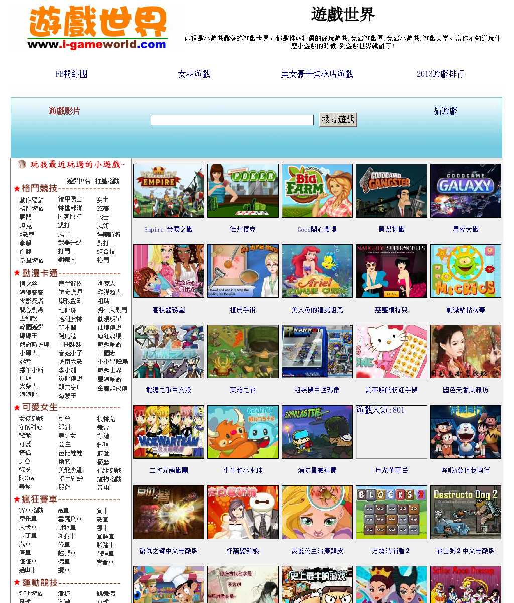 遊戲世界提供上萬種免費線上小遊戲、遊戲區、Flash 好玩遊戲區、遊戲秘技,愛玩小遊戲的朋友們,快來遊戲世界玩你最喜愛的遊戲吧。