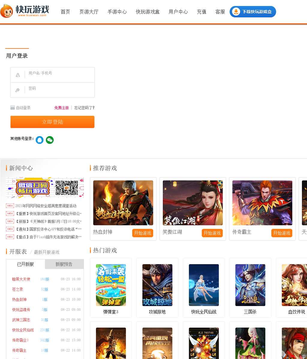 快玩网页游戏是最齐全的网页游戏大全,这里有最好玩的网页游戏,以及最新网页游戏开服信息,凡人修真2,神曲,王者召唤,神魔仙界,武林叁,醉西游,大侠传,神仙道,龙将,热血海贼王,斗破苍穹2,侠武英雄传,英雄远征,英雄王座,梦幻飞仙,百炼成仙,梦幻修仙,